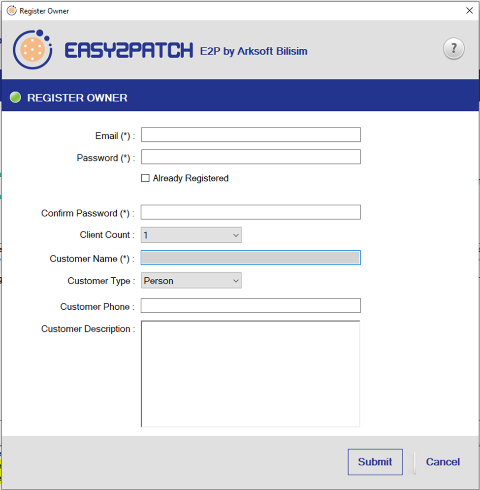 <figure><img src="https://3895802132-files.gitbook.io/~/files/v0/b/gitbook-x-prod.appspot.com/o/spaces%2FyNJ0YZgeWJ1d0SKwplax%2Fuploads%2FzG3YgHFcpTQFstmFokRd%2Fimage.png?alt=media&#x26;token=503bc008-b28d-4103-905a-d0558aa5d55c" alt=""><figcaption><p>Register to use Easy2Patch</p></figcaption></figure>