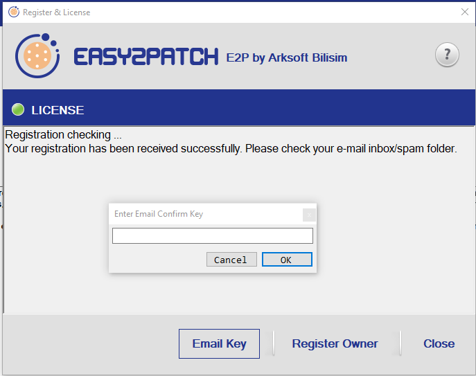8. Enter the product key sent to you by the Easy2Patch sales team on the screen that appears by pressing the **License Key** button. The product is ready for use so that all its features can be used for 30 days.