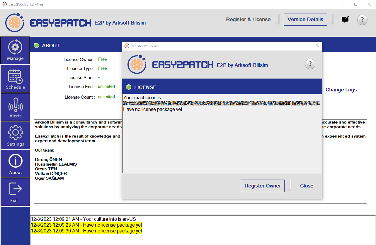 After the installation is completed, the product starts working with a Free license. In free licensing, 1-2 applications determined from 6 categories can be used. Only WSUS integration is possible.
