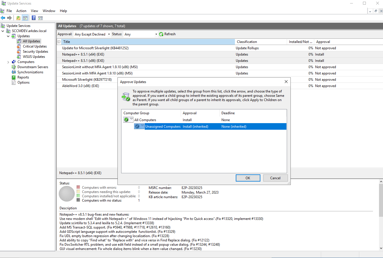 When the approved update comes to the Windows Update screen of the client, the installation is performed and the software is updated.