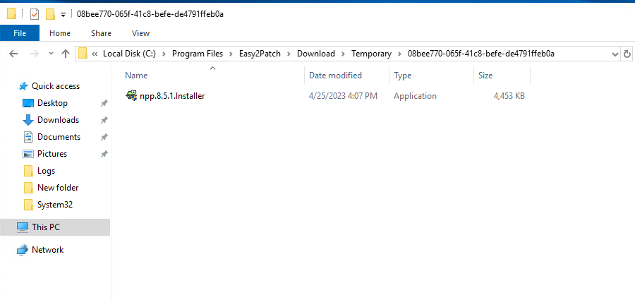 On the Easy2Patch server, updates are downloaded in the Download Path under Settings \ General Settings. A folder named Temporary is created in this path and each update is downloaded into the created folder with its own PackageID value.