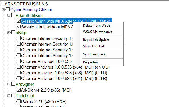 3. **Republish Update**: The selected update is republished to the WSUS system. With this option, the selected update is first deleted from the WSUS system, and then published again.